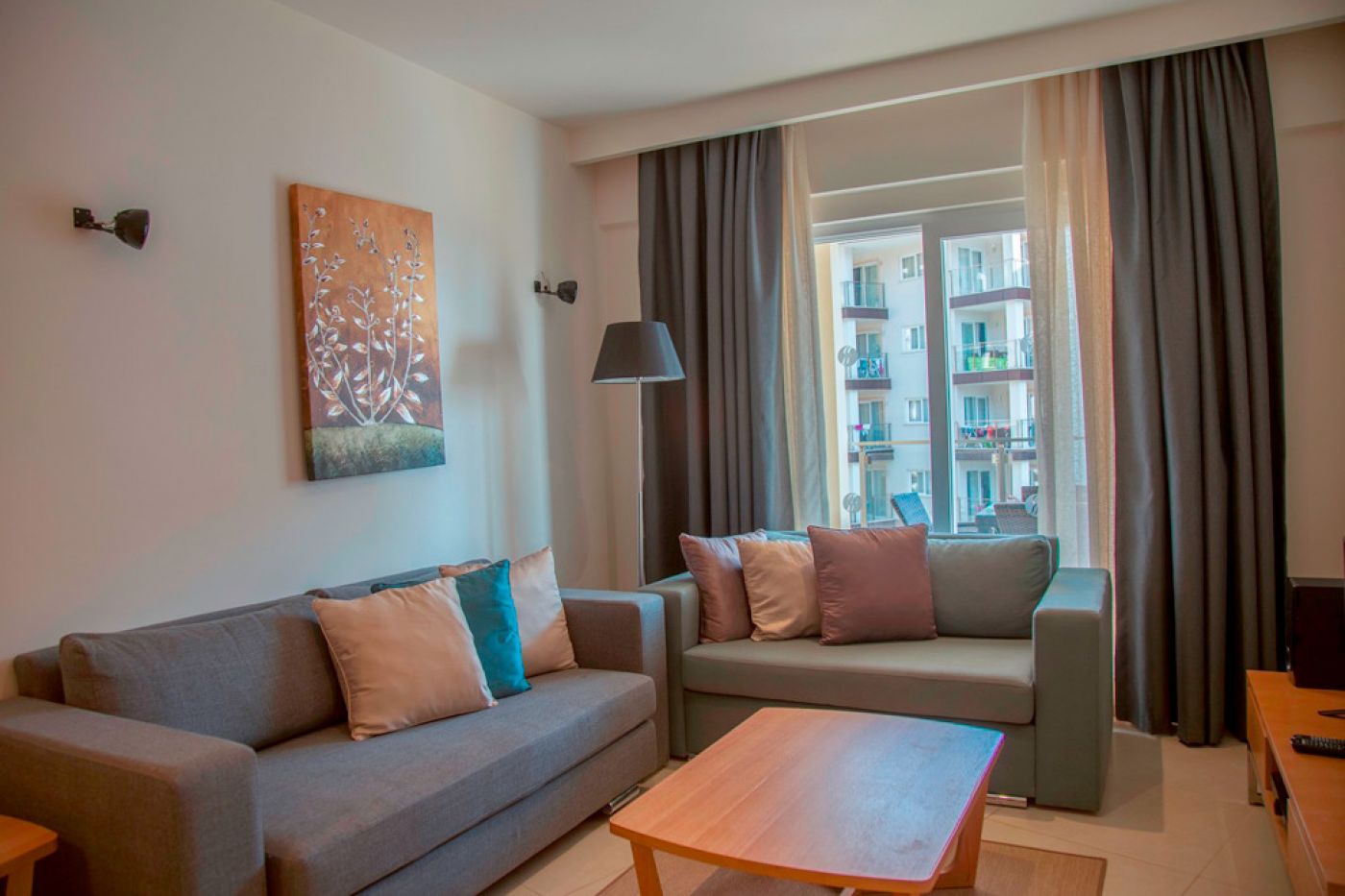 Хотелът се състои от четири сгради, в които са разпределени 443 климатизирани стаи, от които 288 Superior Room (34 кв.м), 63 Junior Suite Room (1 спалня, хол - 53 кв.м), 91 Family Suite Room (2 спални, хол, 2 бани - 71 кв.м) и 2 Handicapped (пригодени за хора с ограничена подвижност).Всички стаи са оборудвани с телевизор, телефон, сет за чай/кафе, минибар (безплатно еднократно зареждане с вода и безалкохолни напитки при настаняване), сейф (безплатен), баня с душ, сешоар, безплатни тоалетни принадлежности, балкон, Wi-Fi . Почистване на стаите – всеки ден, смяна на спалното бельо – 3 пъти в седмицата, смяна на на кърпите – 2 пъти в седмицата.
