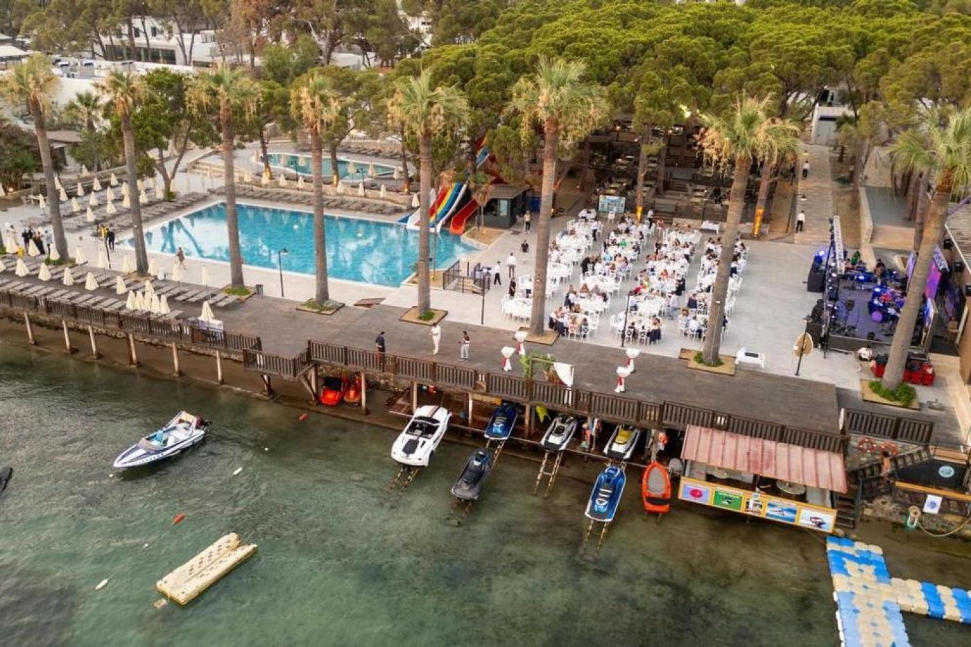 На разположение на гостите има основен ресторант, 4 а`ла карт ресторанта: рибен, италиански, турски и ресторант за закуска. Разнообразни напитки се предлагат в 4 бара (лоби, снекбар, бар на плажа, сладкарница).