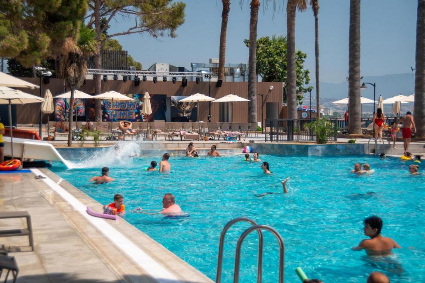 Собствен пясъчно-чакълест плаж точно до хотела. За гостите има още 1 открит плувен басейн за възрастни с детска секция, 2 водни пързалки. Чадъри и шезлонги при басейните и на плажа се ползват безплатно.