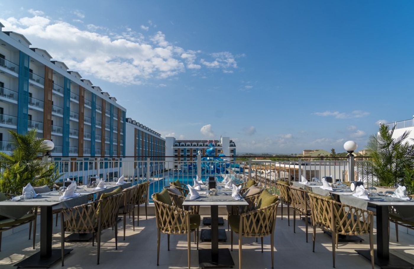 На територията на хотела: Основен ресторант, турски а-ла-карт ресторант, италиански а-ла-карт ресторант, лоби бар, бар при басейна, снек бар, бар на плажа, сладкарница, открит басейн с джакузи, аквапарк със 7 водни пързалки, закрит отопляем басейн, SPA център с турска баня и сауна, анимационна програма със спортни и развлекателни дейности, жива музика, тематични вечерни представления, безплатен безжичен интернет на територията на целия хотел.