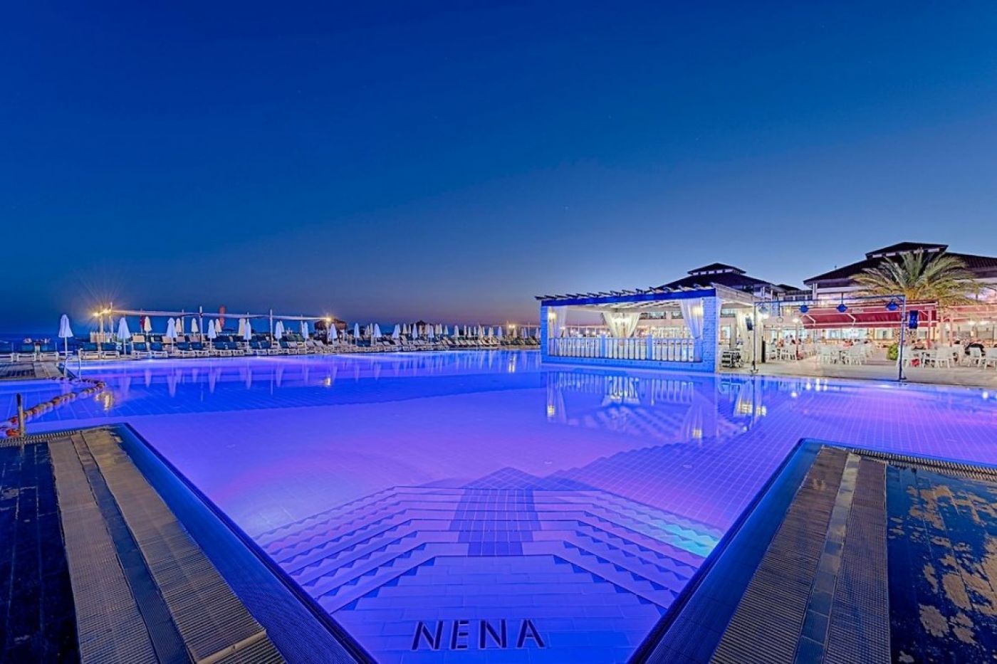 Разположение: CLUB NENA 5* се намира на 13 км от центъра на Манавгат, на 15 км от Сиде, на около 75 км от международното летище в Анталия, в непосредствена близост до морския бряг. На разстояние от 50 м от хотела има търговски център. Построен е през 1997 г., като по етапно са извършвани реновации, последната, от които е през 2023 г. Разположен е върху територия с обща площ от 99000 м2.