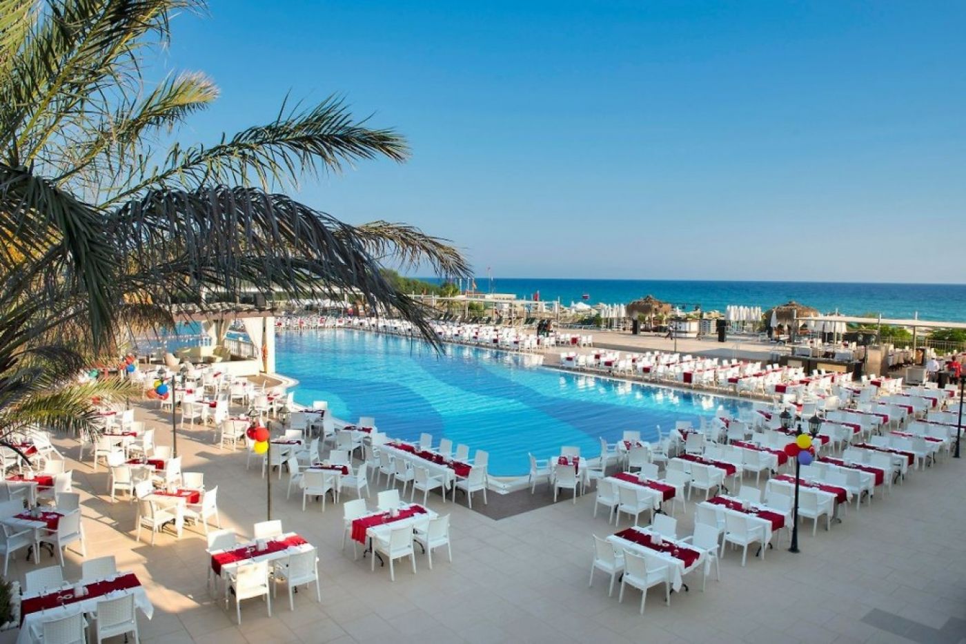 На територията на хотела: 24 часова рецепция, вътрешен основен ресторант, 3 A la Carte ресторанта (турски, италиански, рибен - платени с предварителна резервация), 5 бара, 2 открити басейна, аквапарк, СПА център, фитнес зала (18+), паркинг.