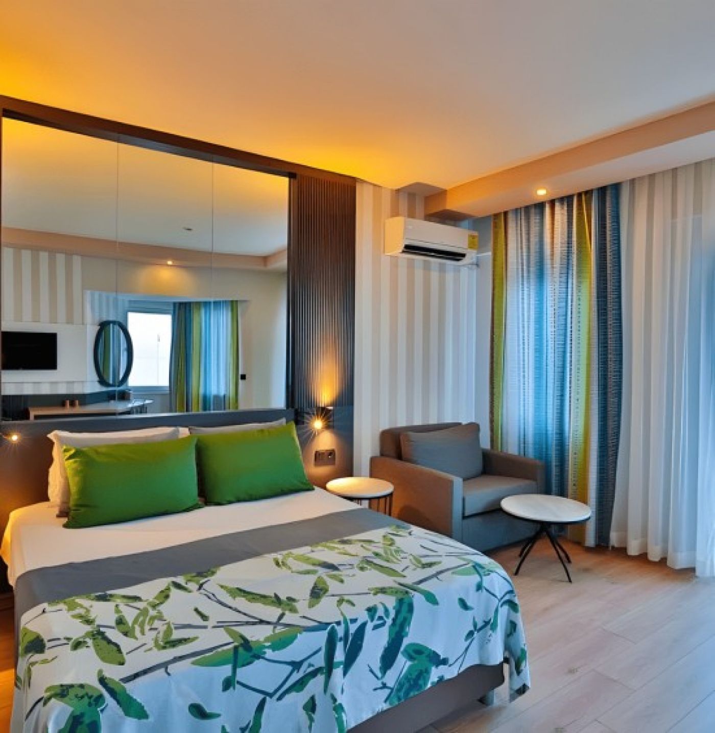 Разположение: Хотелът се намира на 2 км от град Авсалар, на 18 км от Алания и на 93 км от междунардоното летище в Анталия, на брега на морето.