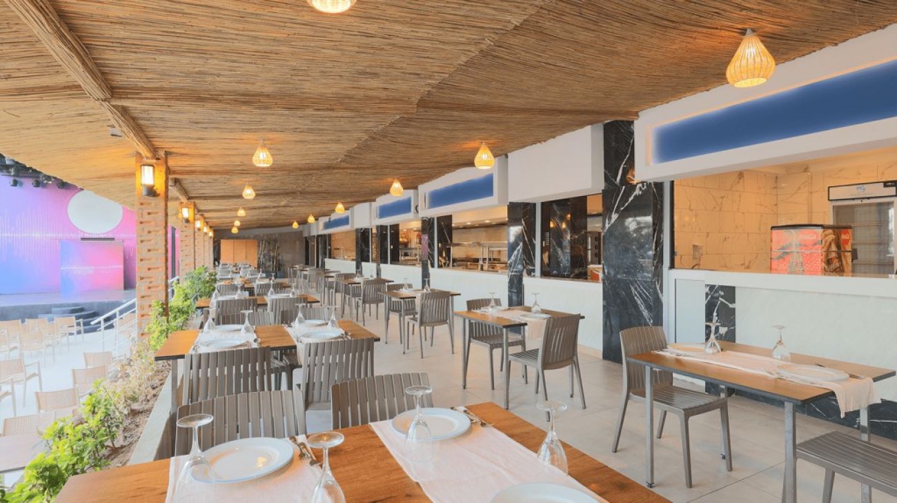 На територията на хотела: 24 часова рецепция, основен ресторант, 1 а ла карт ресторант ( веднъж безплатно посещение, с предварителна резервация), снек ресторант, 3 бара, открит плувен басейн, аквапарк с 4 пързалки, WiFi интернет, СПА ценър.