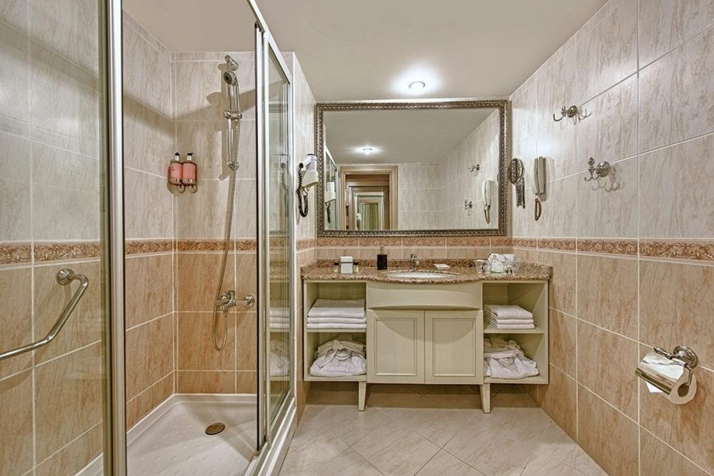 В стаите: Душ, сешоар, Wi-Fi, сейф, балкон, LCD телевизор, телефон, климатик. Почистването е ежедневно, кърпите и спалното бельо се сменят всеки ден. Минибарът се зарежда ежедневно, спалното бельо се сменя веднъж седмично. Осигурени са безплатни чай и кафе. 24-часово обслужване срещу допълнително заплащане.