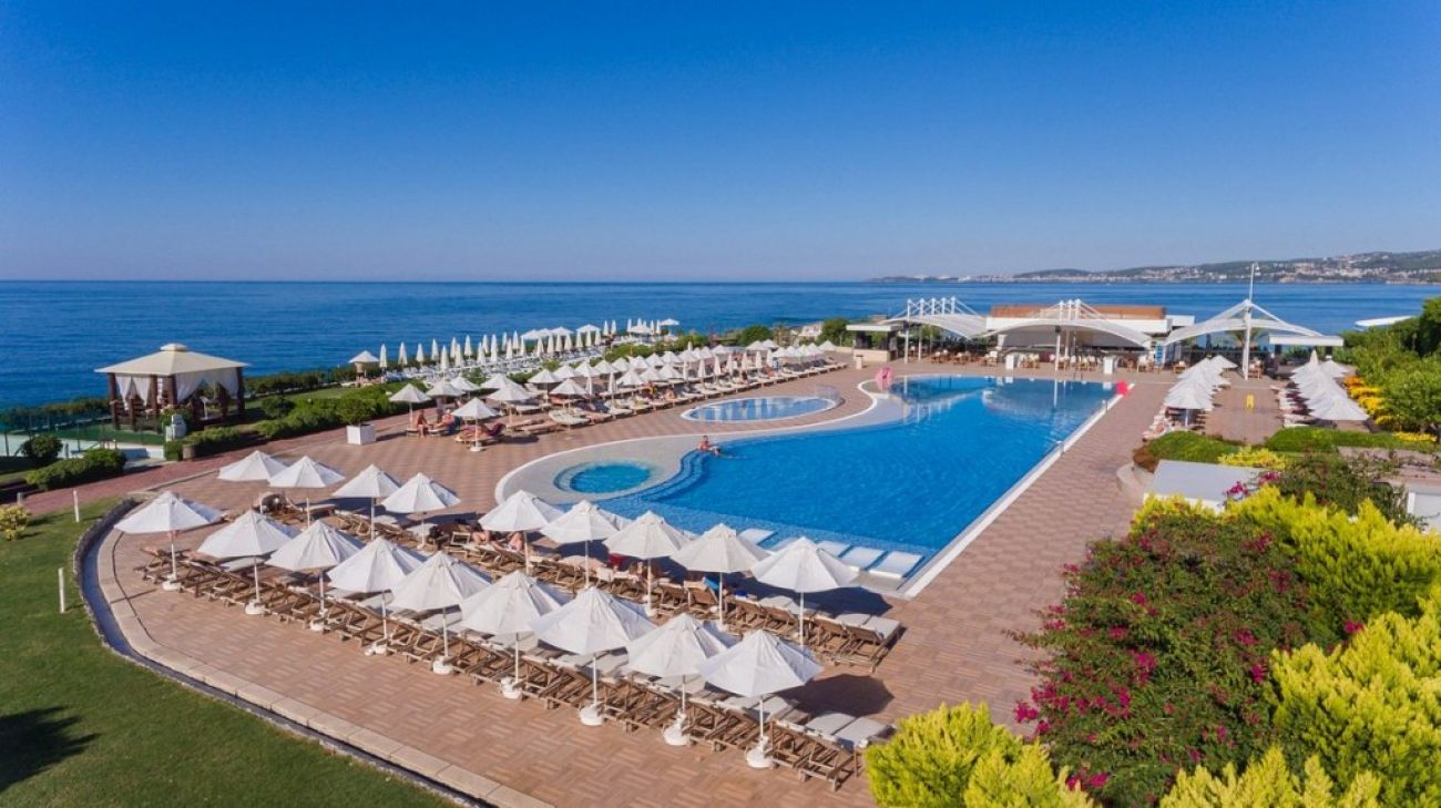 Хотелът е разположен на самия плаж, в района на Алания, на 105км. от летище Анталия,на територия от 35 000кв.м.