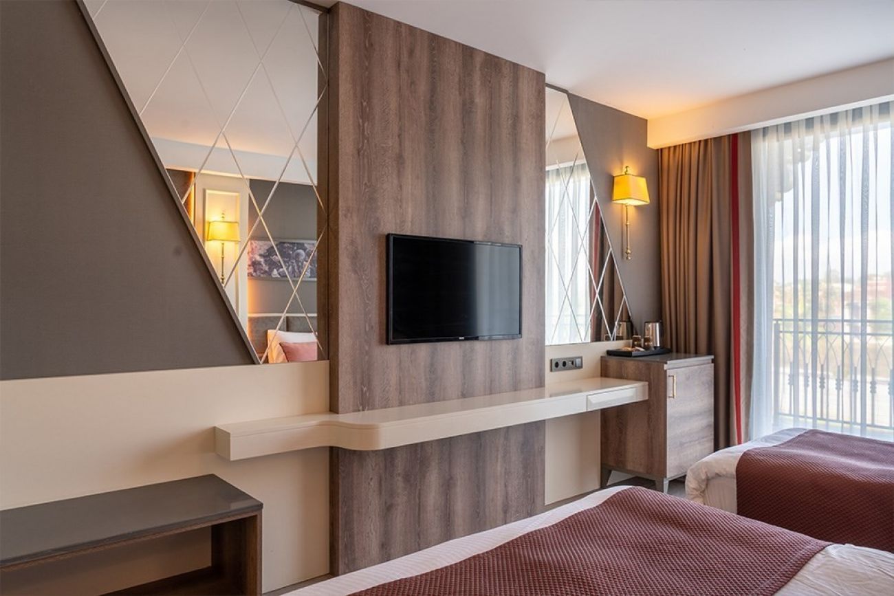 В стаите : климатик, телевизор, сешоар, мини бар, сет за приготвяне на кафе/чай, сешоар, сейф, WiFi, балкон.