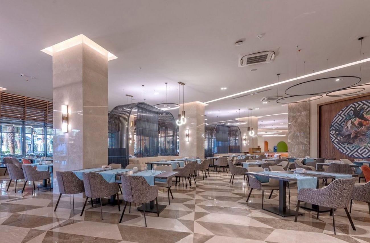 Новият хотел от веригата Kirman Group се намира на трета линия от морето. Води до плажа подземен тунел, който работи през целия ден мини влакче. На място има няколко басейна за възрастни и деца, воден парк, спа център и фитнес зала. Хотелът разполага с няколко ресторанта, включително а ла карт, барове - във фоайето, край басейна, на плажа и др. В основния ресторант се провеждат турски, османски, италиански, мексикански, международни, както и други тематични събития за гости вечери. За малки гости от 4 до 12 години години има мини клуб, индиански лагер, хоби градина, уроци по готварство, пиратски ден и детска площадка. Стаите в хотела са оборудвани с климатик, телевизор, сейф, минибар и балкон.