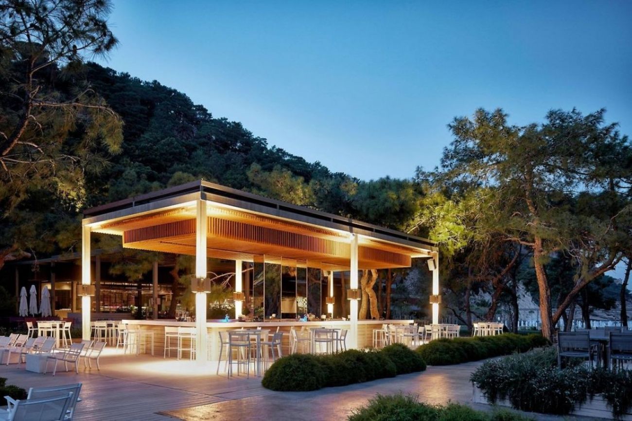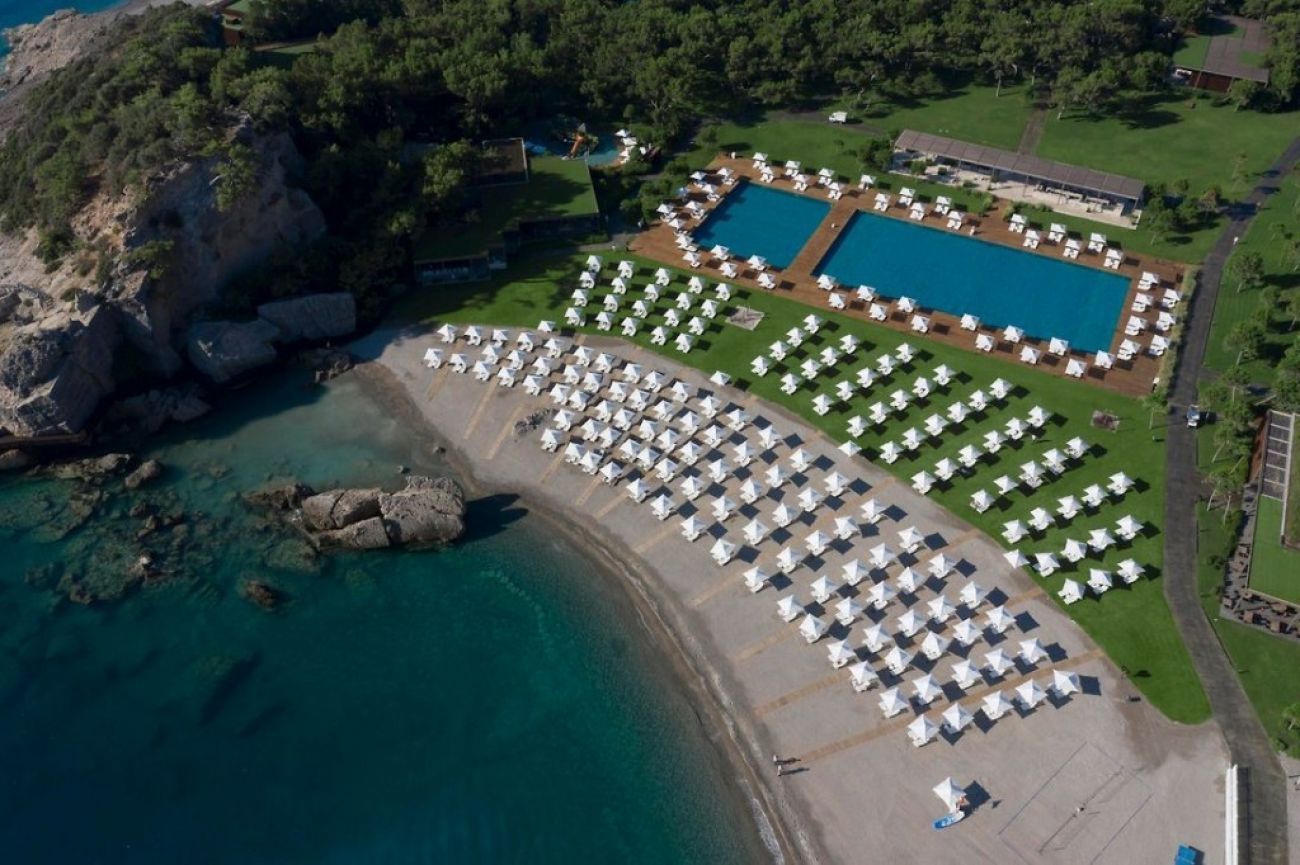 На територията: 4 открити басейна: 1250, 276, 500 (с морска вода) и 7574 m² (2 от тях с подгряване при метеорологични условия), 2 вътрешни басейна, 32 и 211 м² (отопляеми според метеорологичните условия), аквапарк, 7+6 пързалки, основен ресторант 24 часа, 3 а ла карт ресторанта: международен, турски, рибен (безплатно), 4 а ла карт ресторанта: месо, тепаняки, гастро, ресторант за здравословна храна (платен, при резервация), Ресторант "Емералд", 12 бара, сладкарски изделия, тенис кортове, търговски център