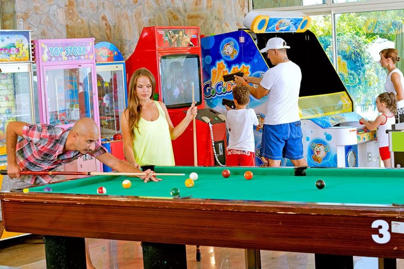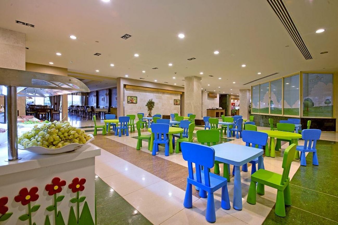 Основен ресторант, 2 а - ла - карт ресторанта (1 път безплатно за престой от 1 седмица), 6 бара, 2 открити басейна, 2 водни пързалки, тв зала, пералня, доктор, спа салон, закрит басейн, паркинг. За децата: детски пързалки, детска площадка, мини клуб Безплатни услуги: сауна, турска баня, анимации, тенис на маса, аеробика, плажен волейбол, баскетбол, 2 тенис корта, дискотека ( напитки платени ). Платени услуги: Wi-Fi интернет, масаж, пилинг, спа процедури, боулинг, билярд, тенис ракети и топки под наем, игрални автомати, интернет кафе, уроци по дайвинг, водни спортове.
