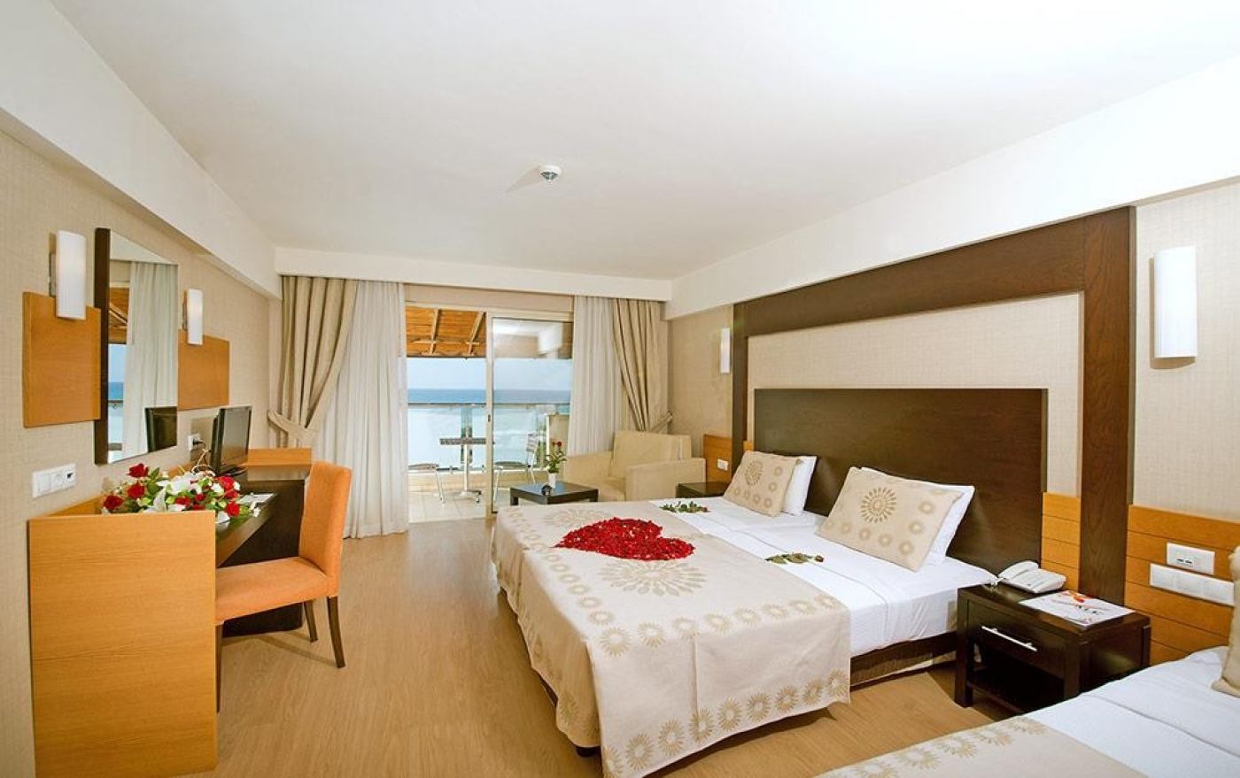 Хотелът се състои от основен 7 етажен корпус. Общо 485 стаи от които 209 са стандартни стаи с изглед градина с големина 26кв.м, 254 стандартни стаи с изглед море с големина 26 кв.м , 22 фамилни стаи с размер 36 кв.м. Всички стаи са оборудвани с: централен климатик, вана, сешоар, телевизор, телефон, сейф – платен, мини - бар, балкон. Почистване на стаите- ежедневно, смяна на спално бельо- на всеки 3 дни.