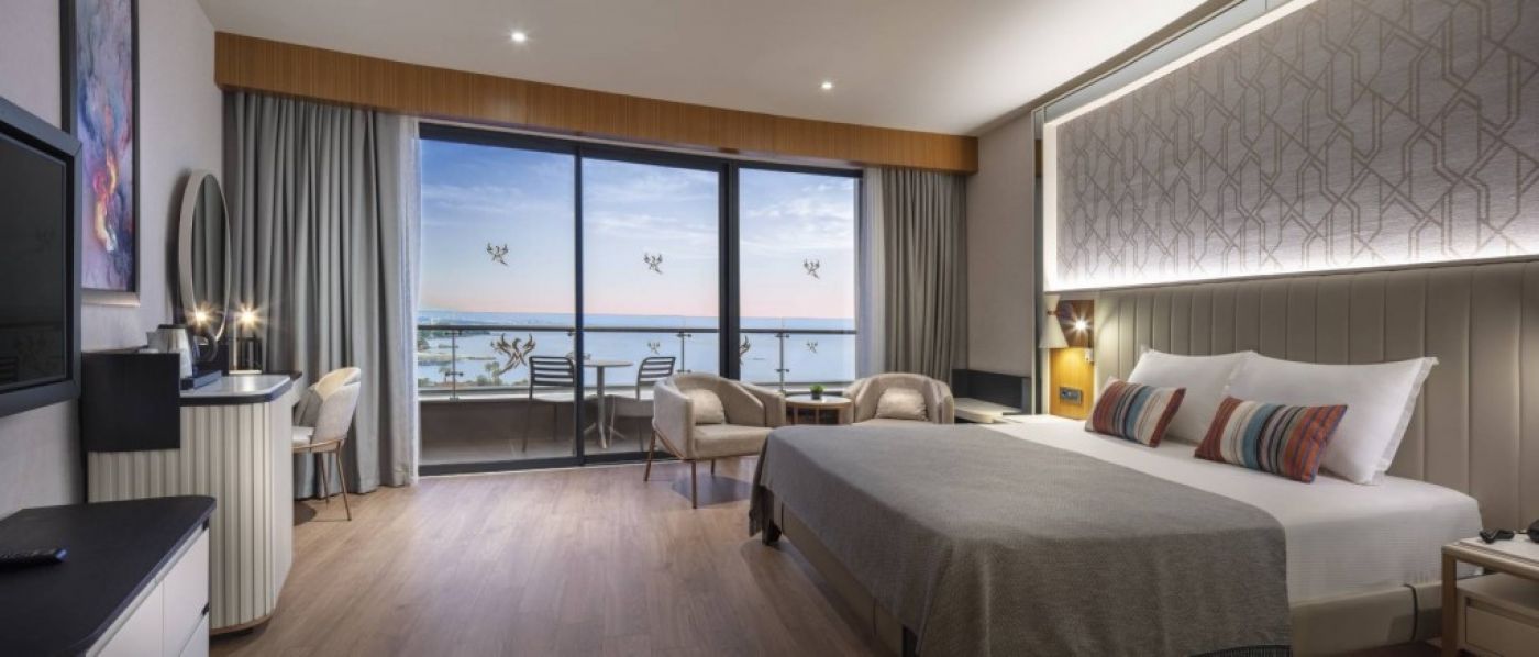Разположение: Хотелът се намира на 90 км от летището в Анталия, на 35 км от Алания, в района на Окурджалар, на брега на морето. Построен е през 2020 г. на обща площ от 30 000 м².