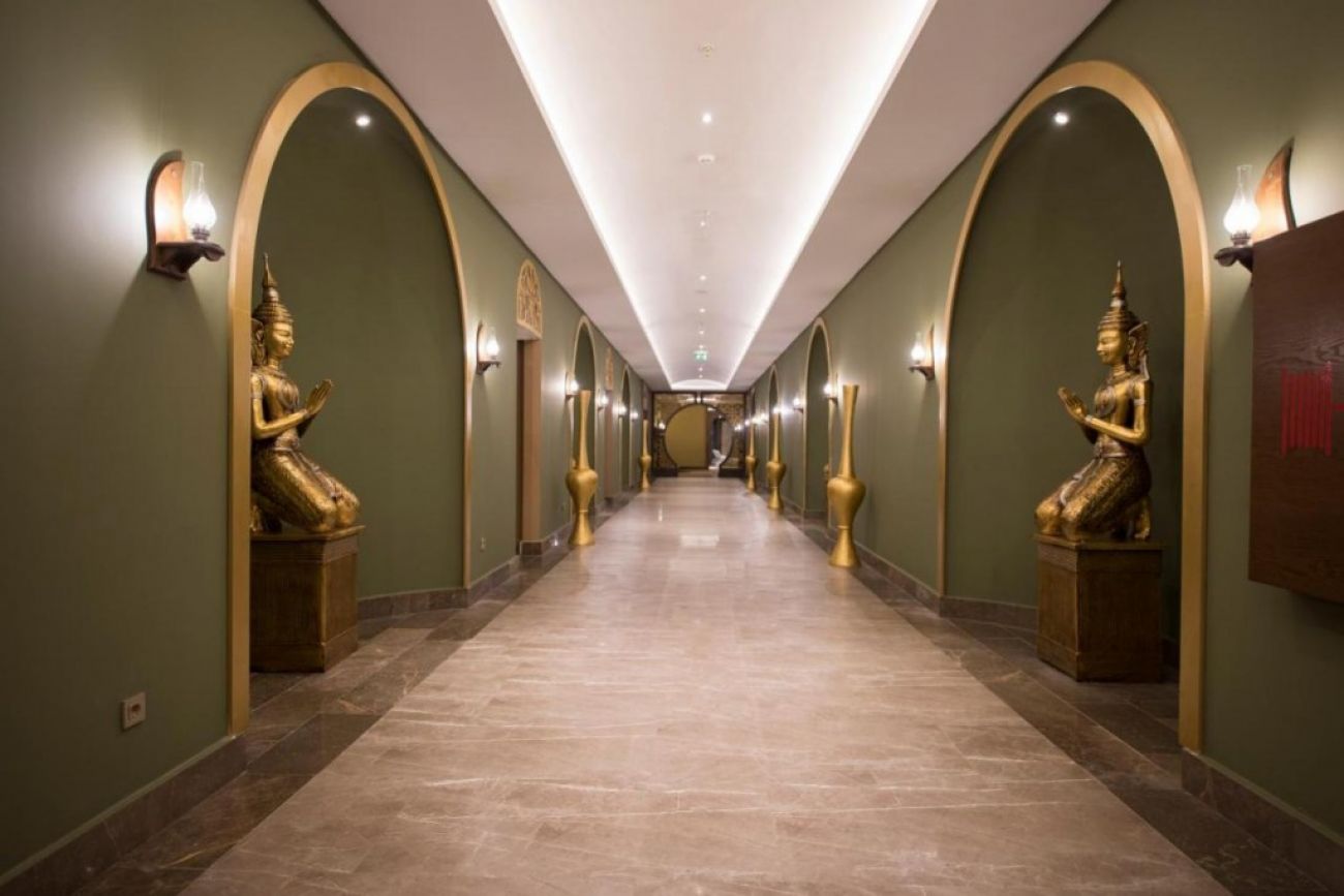 Основен ресторант, 3 а-ла-карт ресторанта (турски, италиански, рибен – 1 безплатно посещение на 1 от ресторантите при минимум 7 нощувки, с предварителна резервация), 2 снек ресторанта, сладкарница, 6 бара, открит и закрит басейн, 3 водни пързалки, СПА център, дискотека, 3 конферентни зали.