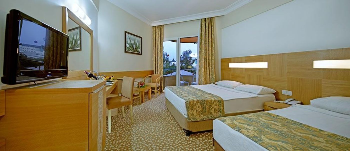 Основен ресторант, 2 а - ла - карт ресторанта(с предварителна резервация), 6 бара, 4 басейна, 5 водни пързалки, анимация, амфитеатър, интернет кафе (срещу заплащане), дискотека (безплатно), обмен на валута, магазини, 2 конферентни зали (500 места), паркинг. За децата: детски басейн, водни пързалки, детегледачка(заплаща се допълнително) Безплатни услуги: турска баня, сауна, фитнес център, дартс, волейбол, баскетбол, тенис на маса, Wi-fi Интернет Платени услуги: масаж, фризьор, Интернет кафе, център за красота, СПА - център, билярд Плаж: Пясъчно - чакълест. Плажни чадъри, матраци и шезлонги – безплатно.