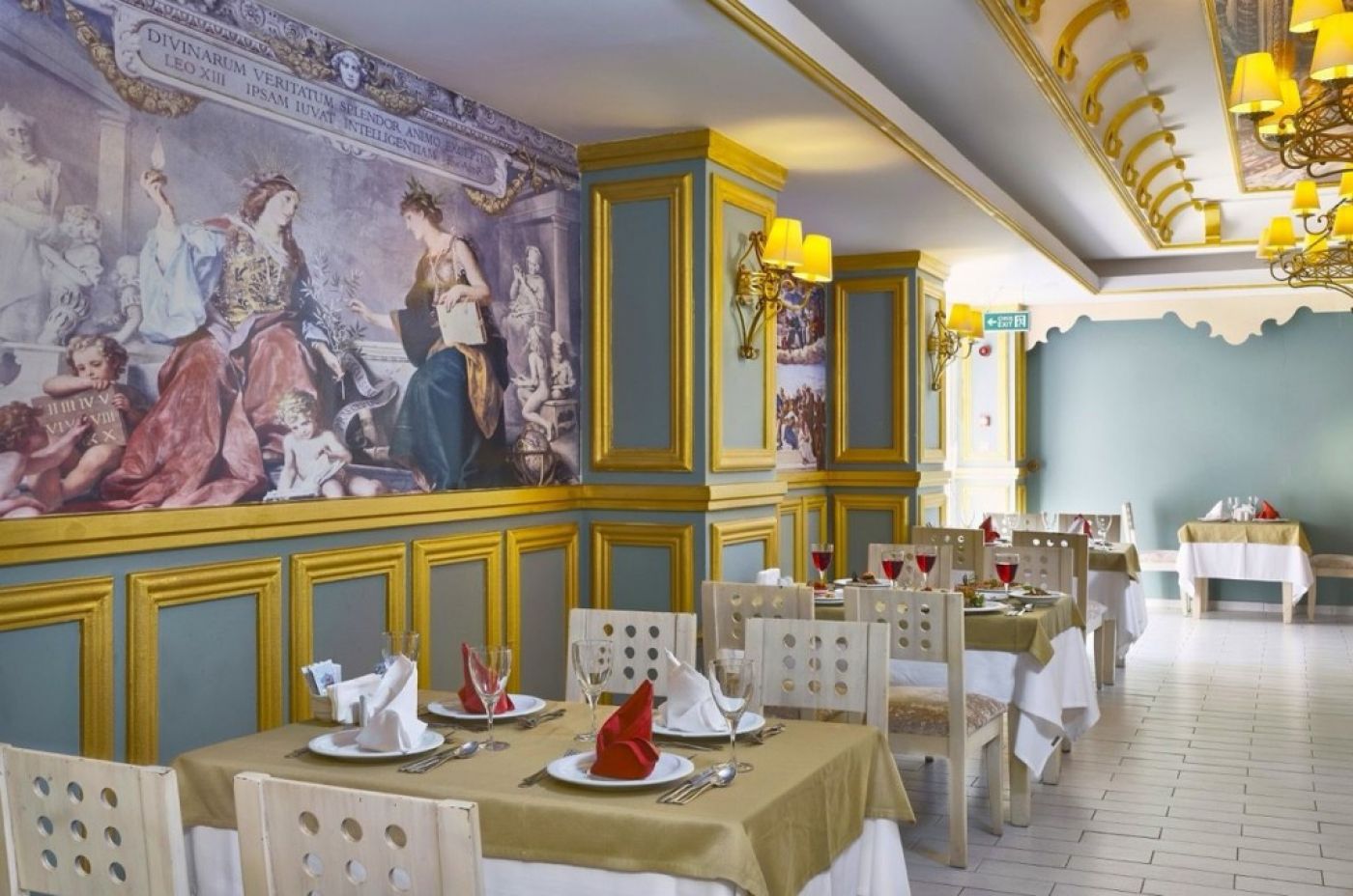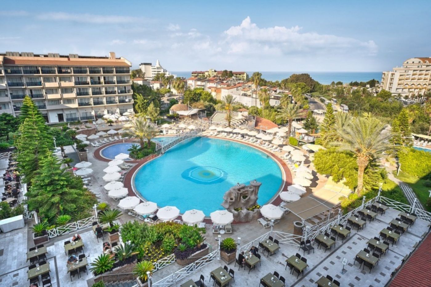 На територията на хотела: СПА, фитнес център, 2 басейна за възрастни, 2 детски басейна с пързалки, различни спортове и анимации- аеробика, водна гимнастика, дартс, тенис на маса. Вечерна анимация- дискотека, жива музика, фолклорни и тематични вечери. Италиански, турски и интернационален ресторант, кафене, снек бар на плажа и до басейна, нощен бар.