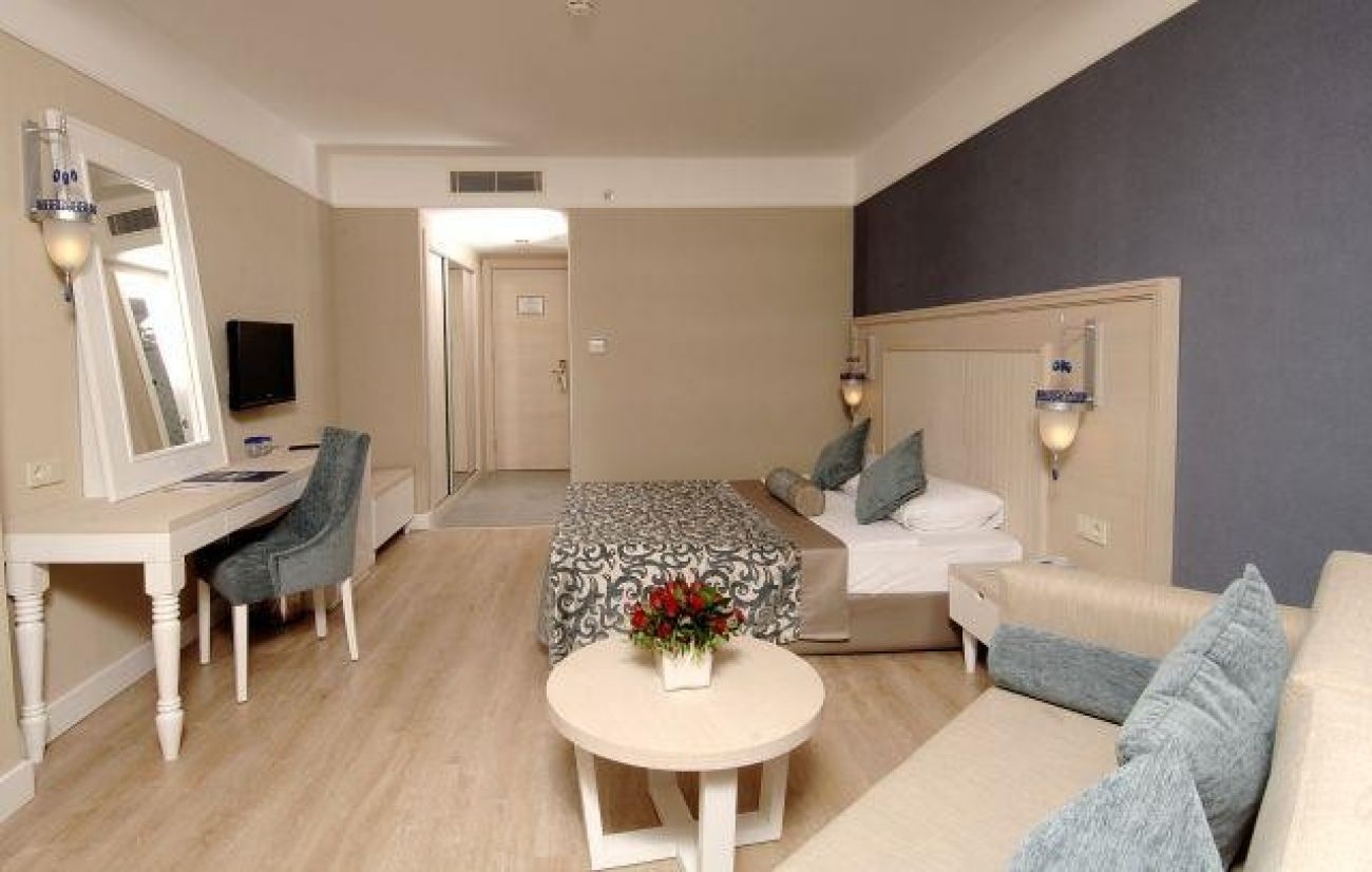 Основен ресторант, 4 а - ла - карт ресторанта (рибен, турски, италиански и китайски, с предварителна резервация, за едноседмичен престой - едно безплатно посещение на един ресторант), сладкарница, 6 бара, 2 открити и 1 закрит басейн, водни пързалки, амфитеатър, дискотека, мини маркет, 4 конферентни зали. За децата: 2 детски басейна – открит и закрит, мини клуб (4-12 г.), тийни клуб (11-15г.) – 6 дни в седмицата, детска анимация, лунапарк. Безплатни услуги: Сауна, турска баня, аеробика, дартс, тенис на маса, степ, боча, плажен волейбол, анимация, Wi-Fi (в лоби). Платени услуги: Масаж, Спа център, лекар, фризьор, рент-а-кар, химическо чистене, боулинг, билярд, интернет, електронни игри, водни спортове, фрешове на плажа. Плаж: Собствен - пясъчен, удостоен със сертификат „Син флаг”. Чадъри, шезлмонги, матраци и плажни кърпи на плажа и при басейните - безплатно.