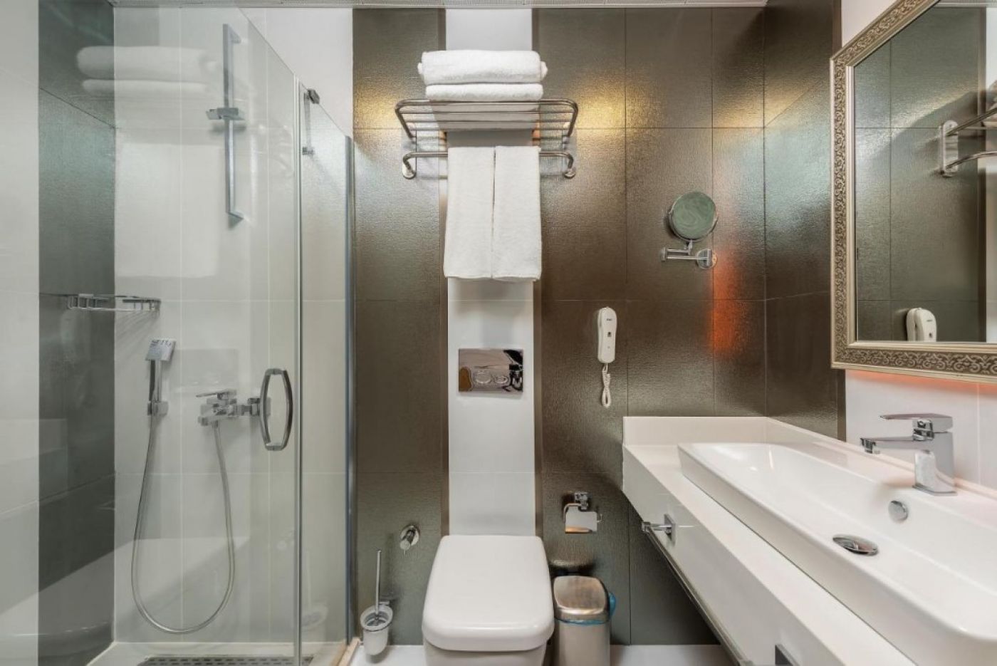 В стаите: Хотелът се състои от една основна сграда и разполлага с общо 127 стаи в няколко различни категории. Всички са оборудвани с картова система за заключване на вратите, централен климатик, минибар, сет за приготвяне на чай/кафе, LCD телевизор със сателитна телевизия, сейф, безжичен интернет, противопожарна и пожарогасителна система, телефон (платен), баня с душ, сешоар, чехли, балкон, паркет на пода.