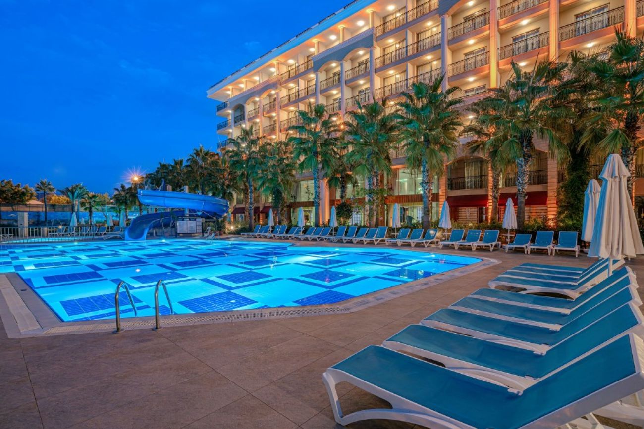 Хотелът се намира на 14 км от Алания, на 2 км от село Конакли, срещу собствен плаж. Хотелът разполага с всичко необходимо за комфортен престой на гостите: ресторант, барове, басейн, анимация през деня и развлекателни мероприятия вечер. За децата има мини клуб и анимационна програма. Препоръчва се за семейна, активна почивка.