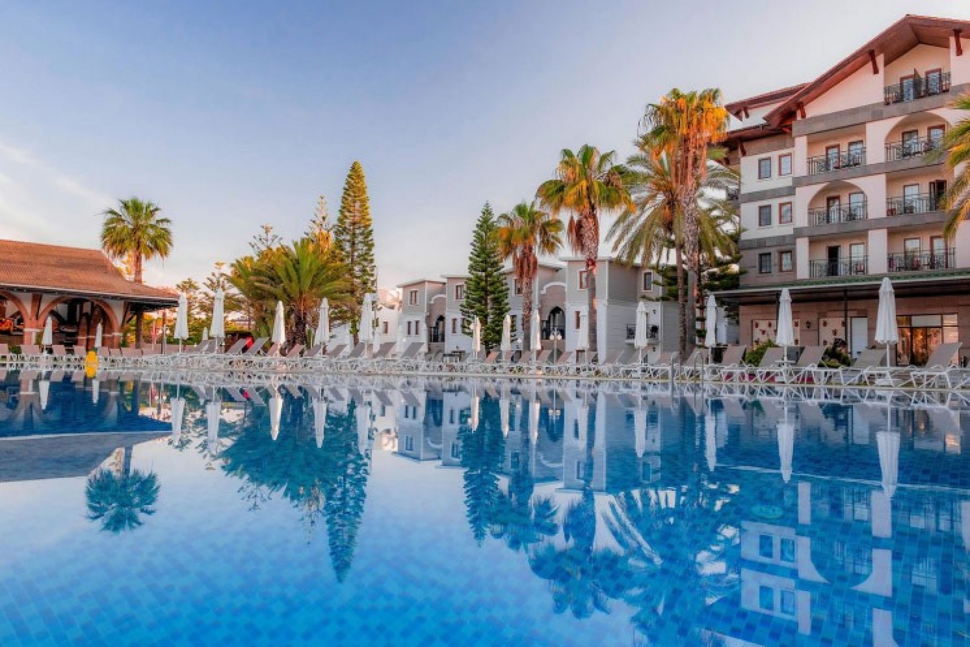 На територията на хотела: Основен ресторант, бар, 2 открити басейна (единият е с пързалки), закрит басейн, фитнес, СПА център, лека анимация, жива музика (провежда се в няколко пъти в седмицата),
