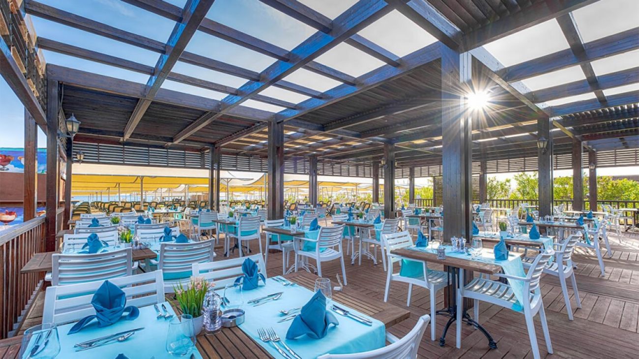 Плаж: Собствена пясъчна плажна ивица на 700 м от хотела, до която е осигурен безплатен шатъл бус. Безплатно ползване на чадъри, шезлонги и матраци на плажа и при басейна. Разполага и с бар на плажа.