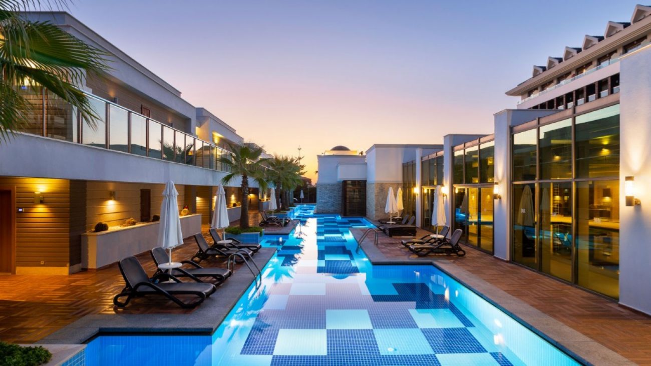 Този хотел е подходящ за семейства с по големи деца или млади двойки/ групи, търсейки по релаксираща и спокойна почивка извън градския шум, за да се насладят максимално на тишина и природа. Намира се точно на брега на морето с страхотни панорамни гледки и е един от най луксозните 5 звездни хотели в Анталия, Белек.