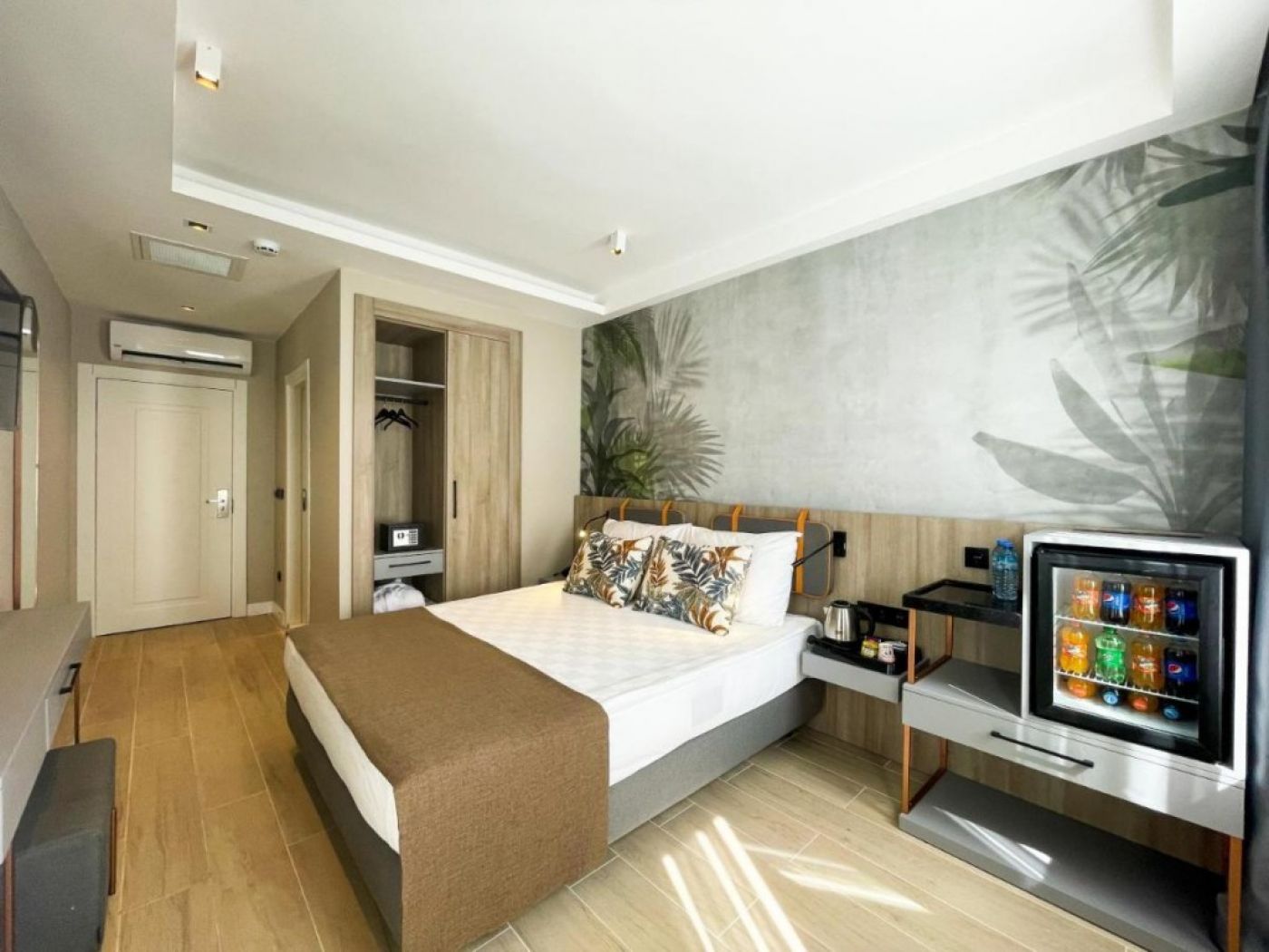 Стаи: Хотелът се сътои от една основна 4-етажна сграда, оборудвана с асансьори и една допълнителна 3-етажна сграда (без асансьор) и общо 129 стаи. Всички стаи са оборудвани с балкон (без икономичнитестаи), електронна система за заключване, климатик, LCD телевизор, минибар (Вода, минерална вода, кола и др. при пристигане. - Ежедневно зареждане с вода през следващите дни), сет за приготвяне на кафе и чай, сейф, телефон, WiFi интернет, баня с душ, тоалетни принадлежности, сешоар.