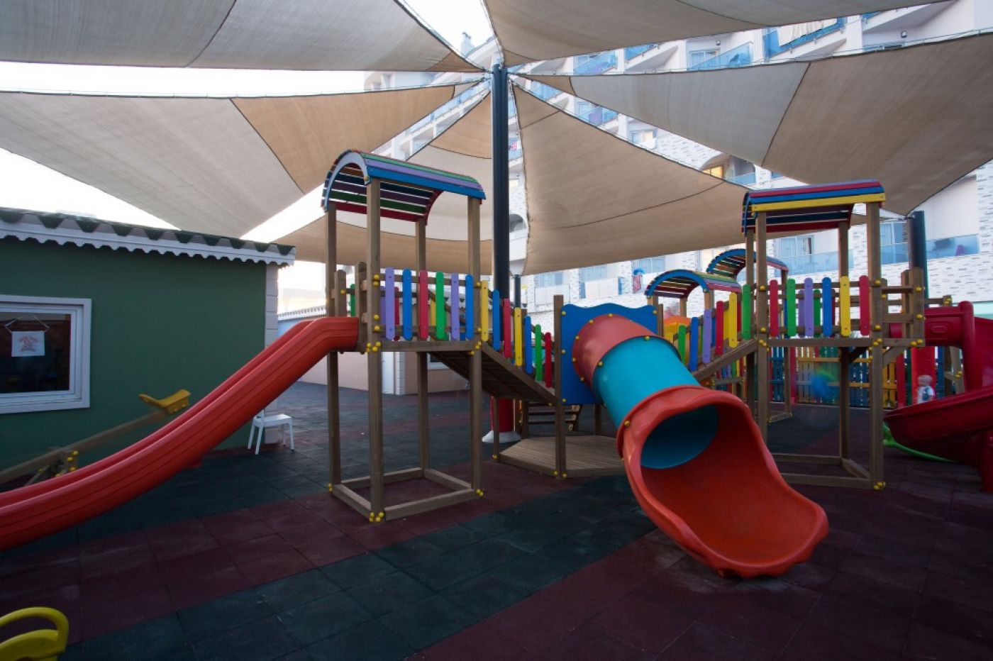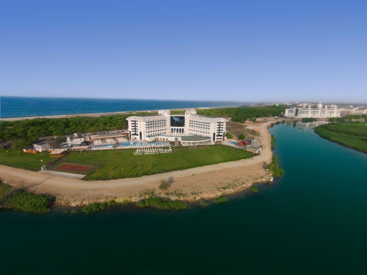На територията на хотела: Разполага с 24 часова рецепция, основен ресторант, лоби тераса, 3 A’la Carte-ресторанта (турски, италиански и морски – едно безплатно посещение за седмичен престой с предварителна резервация), 4 бара ( лоби бар, бар до басейна, бар на плажа, диско бар), основен открит басейн, басейн с 4 водни пързалки, вътрешен басейн, лекарско обслужване, пералня, фризьорски салон, минимаркет, както и бутик и СПА център, фитнес зала.