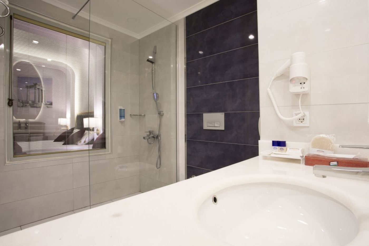 В стаите: Хотелът се състои от една основна 7-етажна сграда, оборудвана с четири панорамни асансьора и разполага с общо 378 стаи, разпределени в няколко категории. Всички стаи разполагат със система за електронни ключове, подова настилка от ламинат, детектор за дим, сет за приготвяне на кафе и чай, сейф (безплатно), климатик, минибар ( ежедневно/безплатно зареждане с вода и безалкохолни напитки), LCD телевизор с музикални и сателитни канали, безжичен интернет WiFi, баня с душ, принадлежности за баня, огледало за грим, сешоар, балкон, телефон.