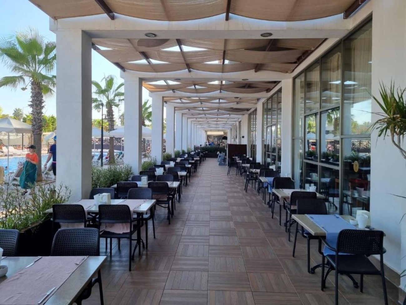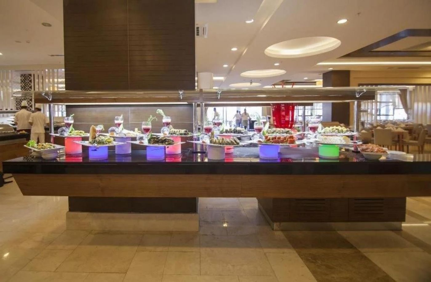 На територията на хотела: основен бюфет ресторант, 2 а-ла-карт ресторанта ( турски и рибен ресторант), снек бар, лоби бар, бар на плажа, сладкарница, 2 открити басейна, 1 закрит басейн, детски басейн, 3 водни пързалки, анимация, СПА център, фитнес център, билярд, дискотека, мини клуб, тенис на маса, конферетна зала, WiFI срещу заплащане.