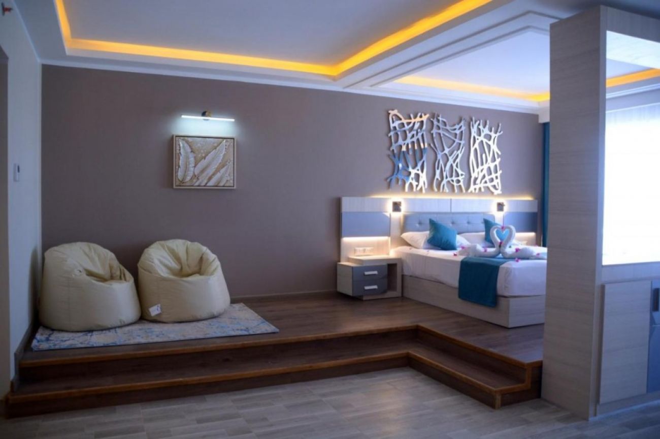 Плаж: Частен пясъчен и скалист плаж, понтон, корали в близост, пясъчен вход към морето, първа брегова линия. Препоръчват се специални обувки. Чадъри, шезлонги, матраци, хавлии – безплатно. Дължината на плажа е 600м.