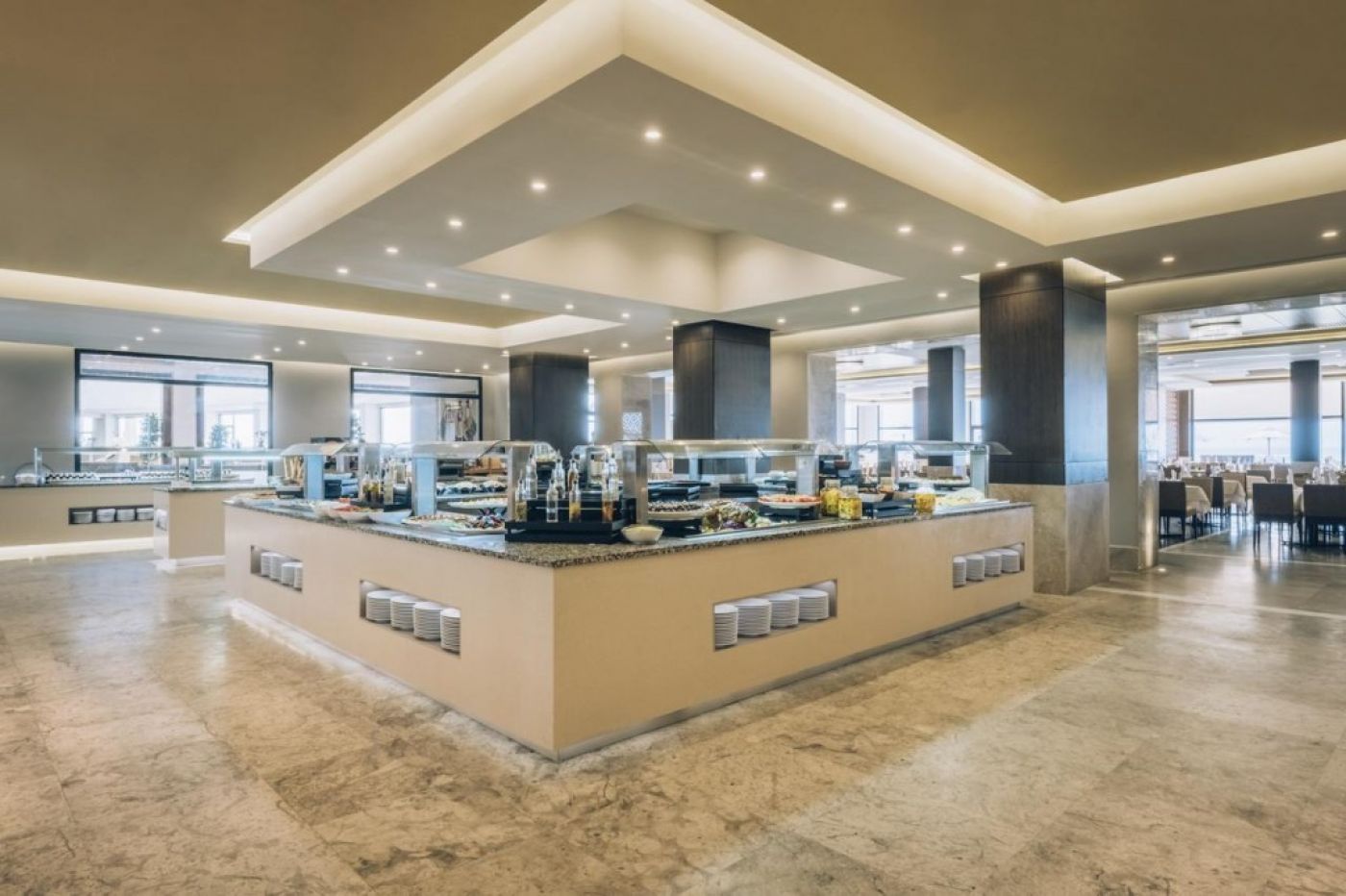 На територията: Основен ресторант, а ла карт ресторант (срещу заплащане, при предварителна резервация), снак бар до басейна, бар басейн, лоби бар, плажен бар, 2 открити басейна, един от които с водни пързалки, закрит отопляем басейн, 10 пързалки, 24 часова рецепция, 3 конферентни зали, СПА център, сувенирен магазин, обменно бюро.