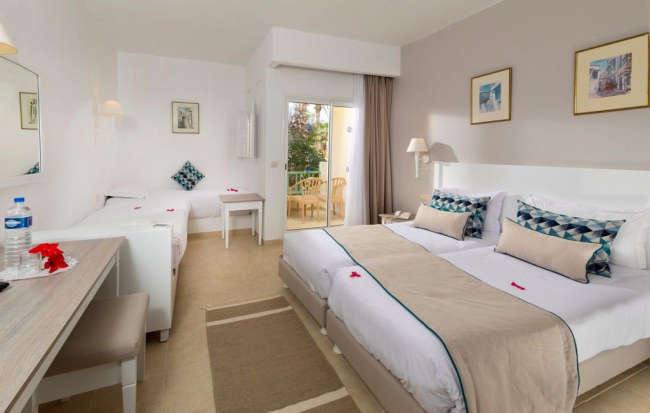 Разположение: Хотелът е разположен на 30 минути от летище Джерба-Зерзис, на брега на морето. Разположен в туристическа зона Мидун, 15 минути от столицата Хумт Сук и 5 минут от казино “PASINO”. Хотелът е построен през 1998 г., реновиран през 2019г., с типична архитектура от 2 етажна сграда.