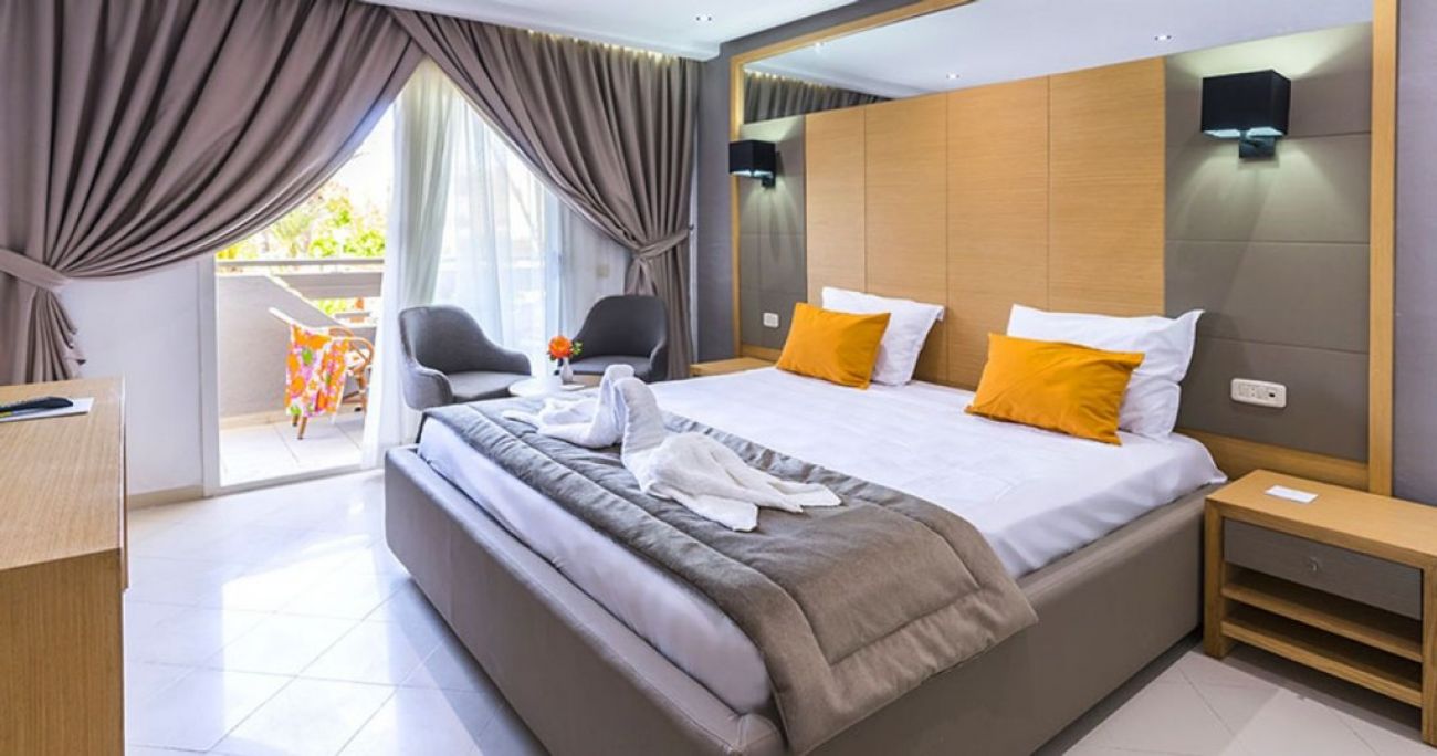 В стаите: Хотелът разполага с общо 308 стаи, разположени в триетажни сгради, като основната сграда разполага с два асансьора - Standard Room (29 кв.м), Sea View Room (29 кв.м), Superior Room Garden View (29 кв.м), Connecting Room (две стаи със свързана врата).