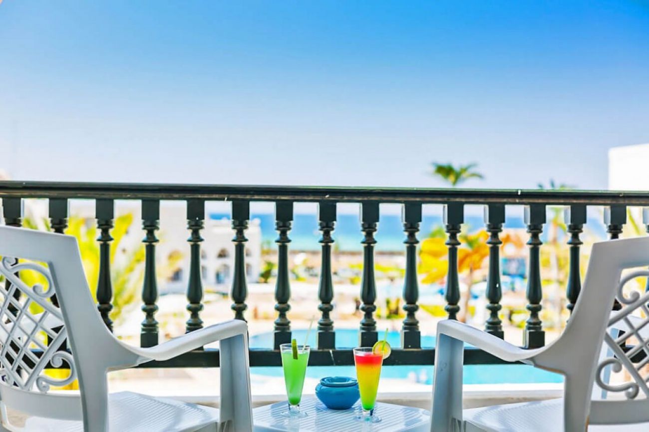 В стаите: Хотелът разполага с 504 стаи, разпределени в три сгради, като основната сграда има два асансьора - Standard Room (26 кв.м), Standard Room Sea/ Pool View (29 кв.м), Family Room Garden View (38 кв.м), Connecting Room (стаи със свързана врата), Connected Room Sea & Pool View (стаи със свързана врата и морска гледка или гледка басейн) и Suite Sea View (60 кв.м с хол). Всички стаи са оборудвани с климатик, телевизор, баня с душ/вана, сешоар, тоалетни принадлежности, минибар, сейф (платено), балкон или тераса. Почистване на стаите- всеки ден.