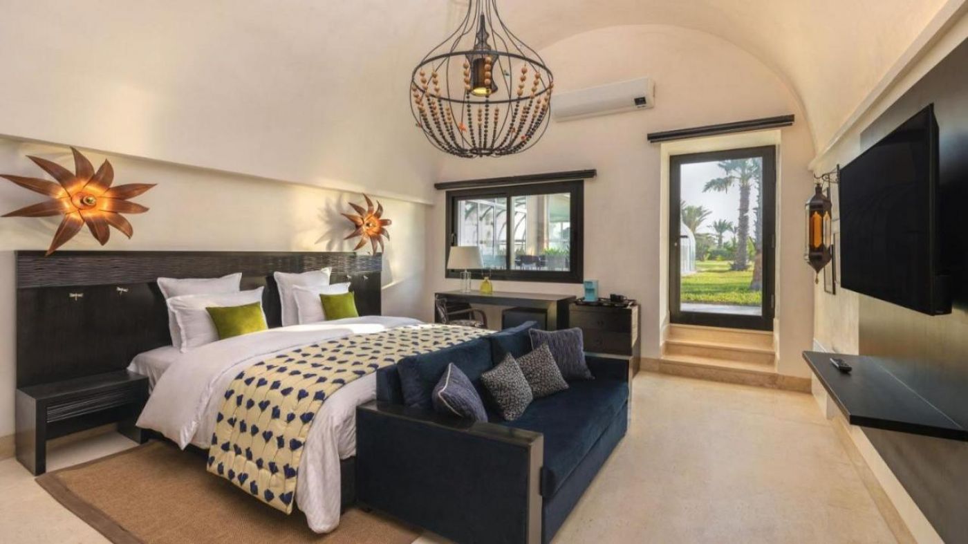 Този очарователен хотел, в тунизийски стил е разположен на 9 хектара зелена площ и разполага с басейн, детски клуб, спортни игрища, СПА център, няколко ресторанта и бара и безплатен безжичен интернет на цялата си територия.