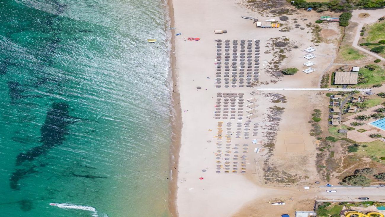 - Шезлонги, чадъри и кърпи на плажа и при басейна