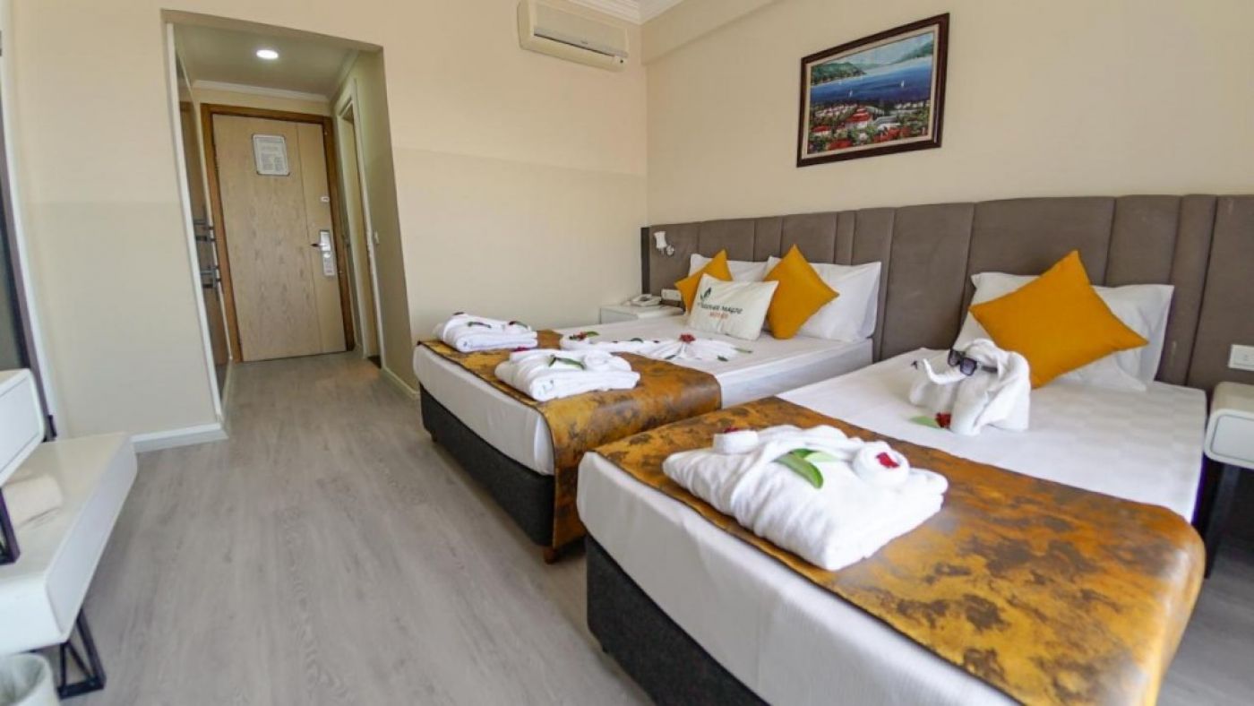 Хотелът се намира в близост до курорта Белек, в село Богазкент. Уютен хотел с компактна територия за семейна почивка. Хотелът разполага с басейн, детски басейн, пързалки, ресторанти, барове както в близост до басейна, така и на плажа. Има и Спа салон, където можете да си направите масаж и да посетите салон за красота. През целия ден се провеждат анимационни програми за възрастни и деца. Любителите на спорта и активния отдих могат да посетят фитнес залата и да се насладят на водни спортове.