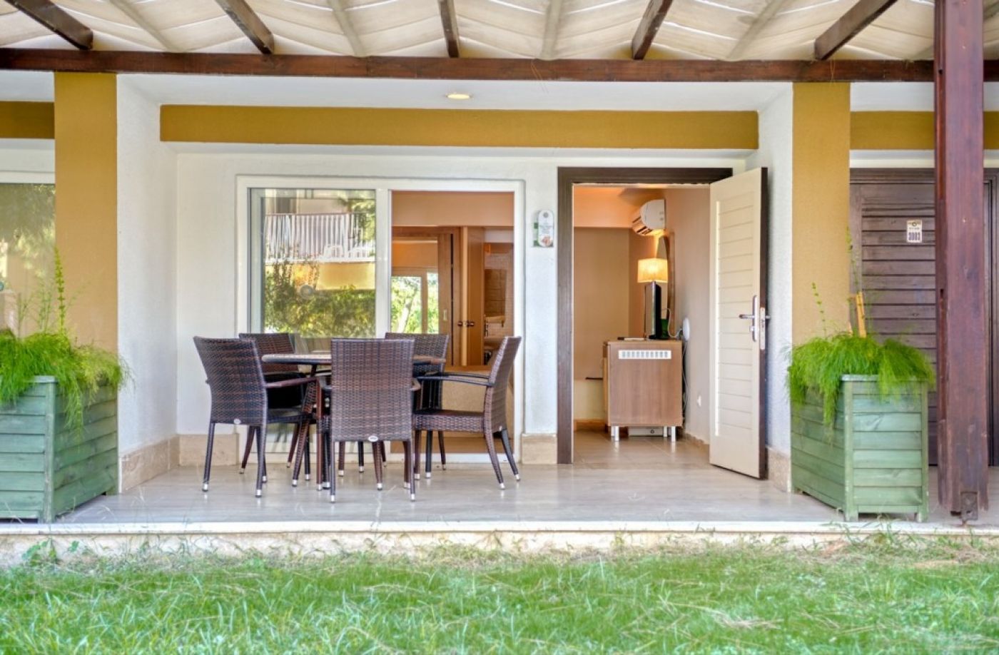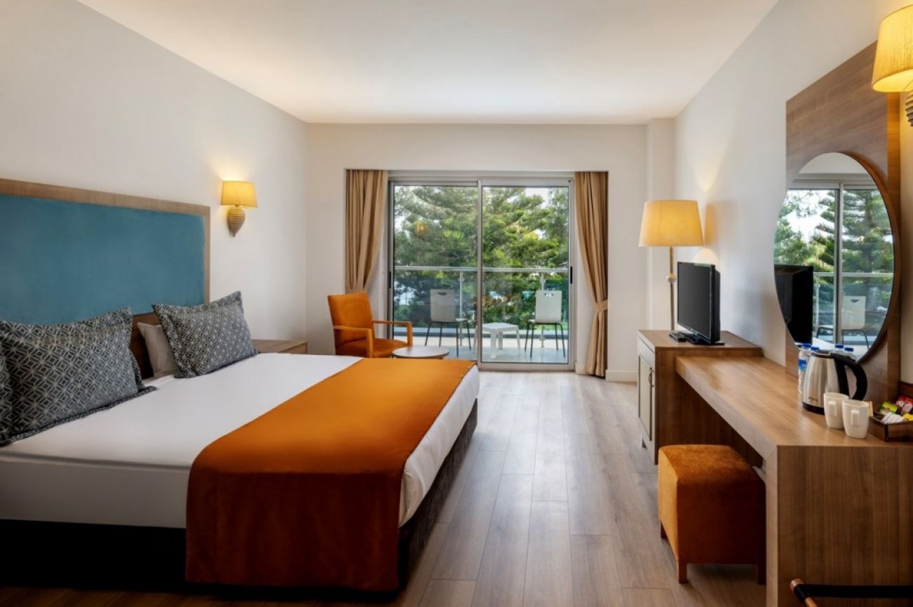 В стаите: Състои се от 3 основни сгради и седемнадесет двуетажни вили. Хотелът разполага с 428 стаи. Оборудвани са с централна климатизация, сателитна телевизия, телефон, баня с душ/вана, сешоар, минибар (всекидневно безплатно зареждане с безалкохолни напитки, бира и вода), сет за кафе/чай, сейф (безплатно), балкон (11 стаи без балкон), под – ламиниран паркет. Почистване на стаите и смяна на кърпите - всеки ден, смяна на спалното бельо – на заявка.