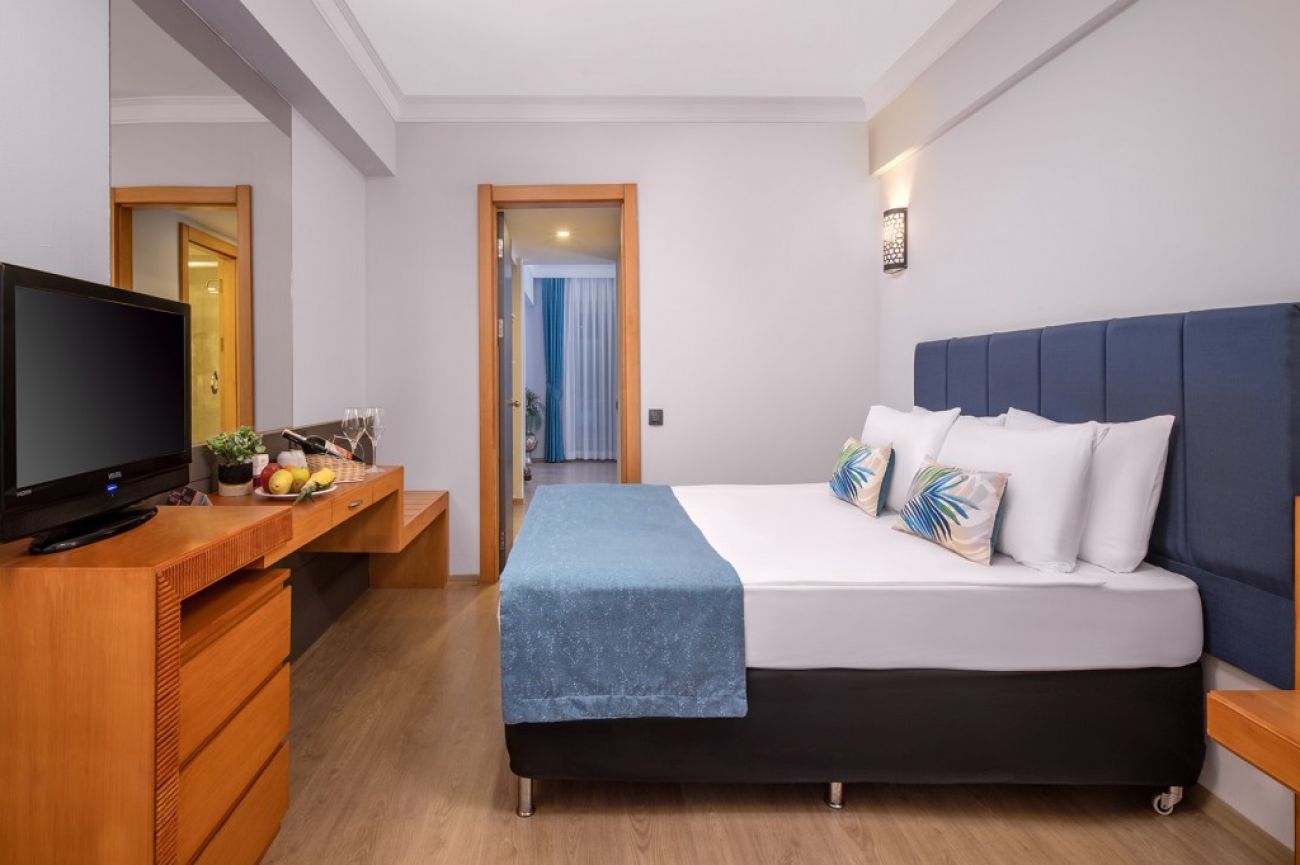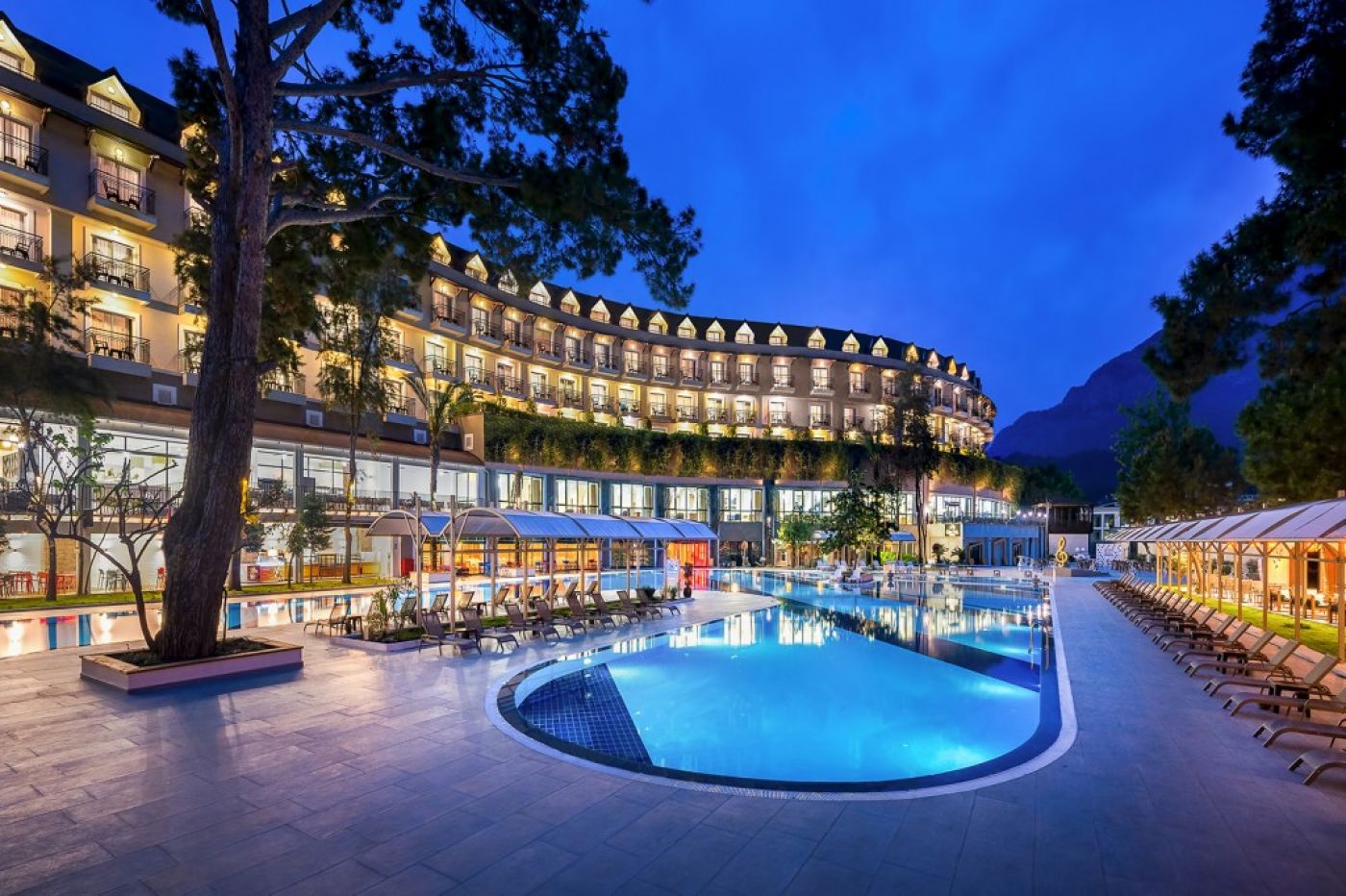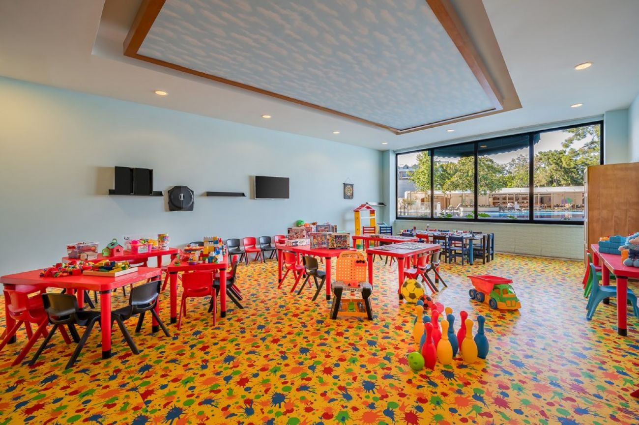 Основен ресторант, 6 а - ла - карт ресторантa (с предварителна резервация), 8 бара, 2 открити и 1 закрит басейна, 3 водни пързалки, магазини, СПА център, дискотека, кино, конферентни зали, паркинг. За децата: Детска площадка, мини клуб (4-12 г.), 2 детски басейна – външен и вътрешен, водни пързалки, анимация. Безплатни услуги: Турска баня, сауна, джакузи, фитнес, дартс, тенис на маса, тенис корт (с предварителна резервация), баскетбол, аеробика, водна гимнастика, кино, жива музика, анимация, интернет. Платени услуги: Масаж, фризьор, търговски център, билярд, джаги, интернет кафе (с предварителна резервация), видеоигри, химическо чистене, лекар, водни спортове, наем на топки и ракети за тенис, осветление за тенис корта.
