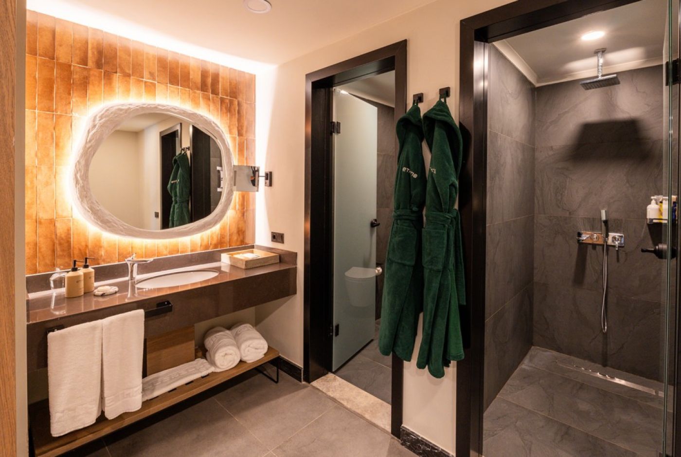 В стаите: Разполага с общо 441 стаи, сред които: Deluxe Room Forest View / Sea View (56 m2), Deluxe Room Swim up (64 m2 с директен достъп до басейн), Superior Jacuzzi Room Forest View / Sea View (72 m2), Superior Jacuzzi Room Swim Up (78 m2), Family Suite Forest View / Sea View (76 m2), Swim up Family Suite (125 m2) - 2 спани, 2 бани, Ethno Suite Sea View (184 m2) - този тип апартамент разполага със сауна и хамам. Всички стаи са оборудвани климатик, телевизор, телефон, кафе машина Nespresso, сет за чай, сешоар, халати и чехли, ютия и маса за гладене, сейф, балкон, луксозна кометика.