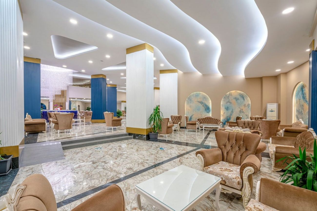 Разположение: Намира се в идеалния център на Алания, на трета брегова линия. Хотелът разполага с шатъл до плажа, а летище Анталия е на около един час с кола или автобус. На пешеходно разстояние има множество заведения, ресторанти, луна парк, Алания Аквапарк, музеи и исторически забележителности.